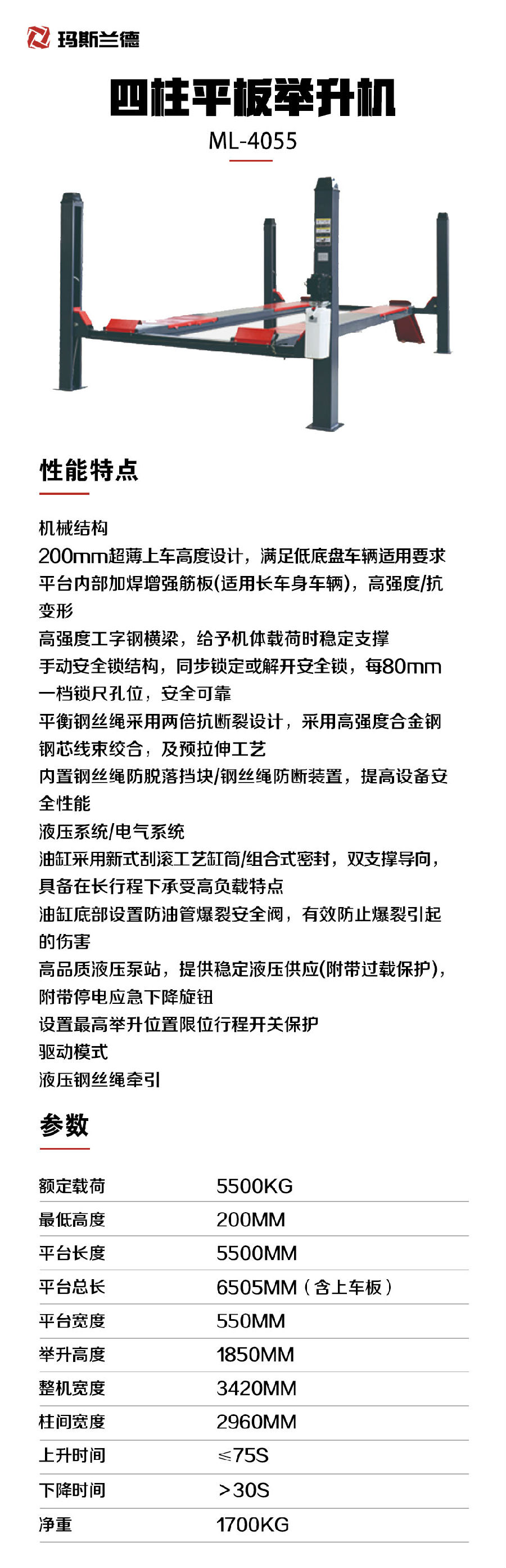 四柱平板举升机 ML-4055