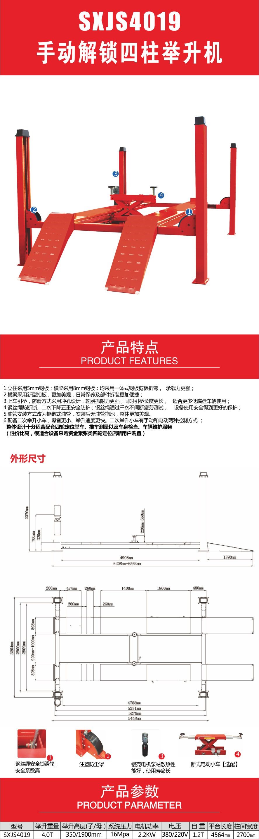 手动解锁四柱举升机