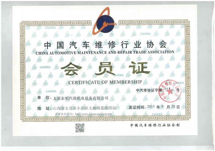 2015中国汽车维修行业协会会员证