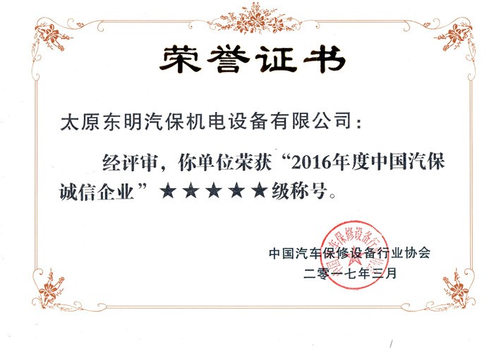 2017中国汽保诚信企业五星级称号